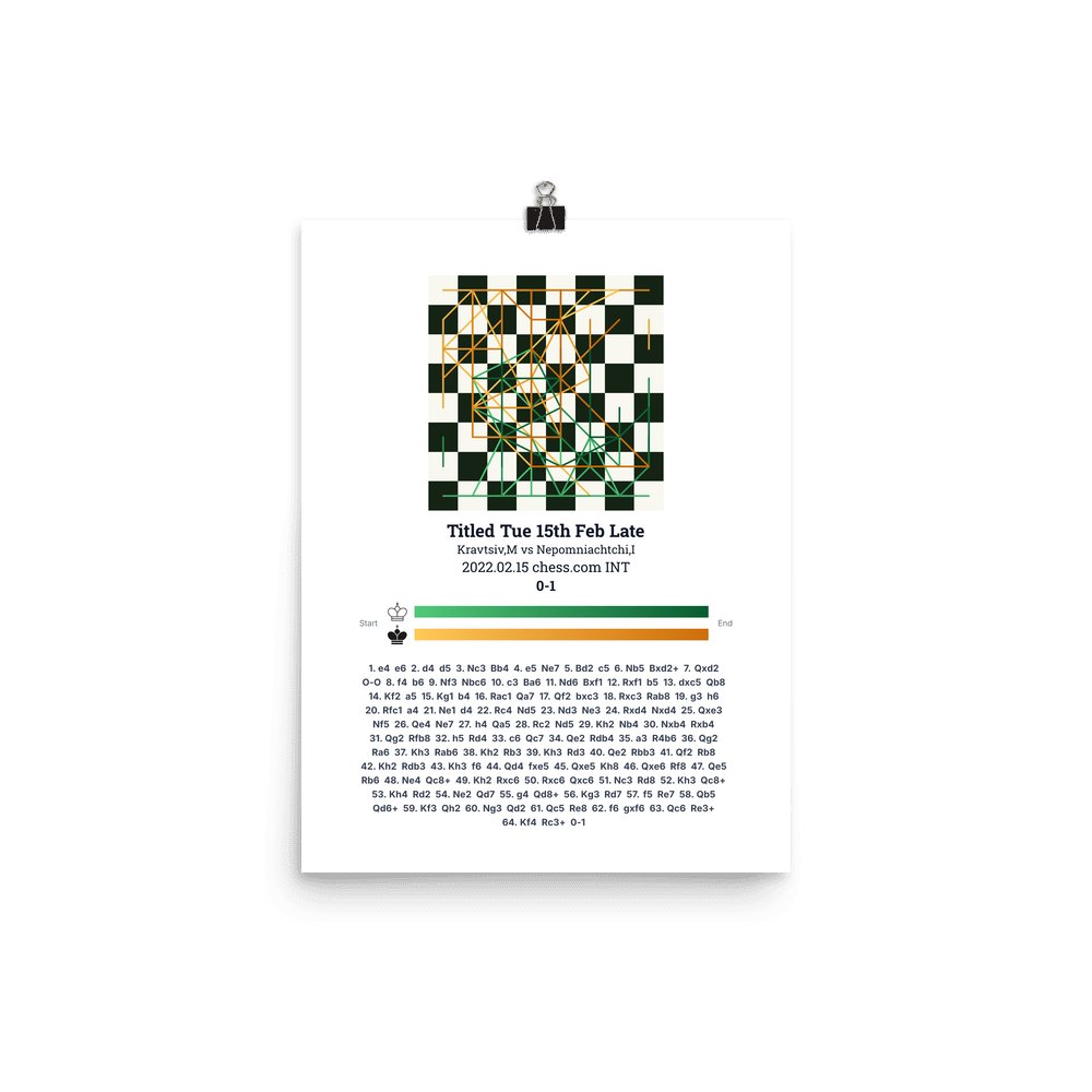 Museum-quality poster on thick, durable matte paper. A sharp, clean look for any chess visualisation.