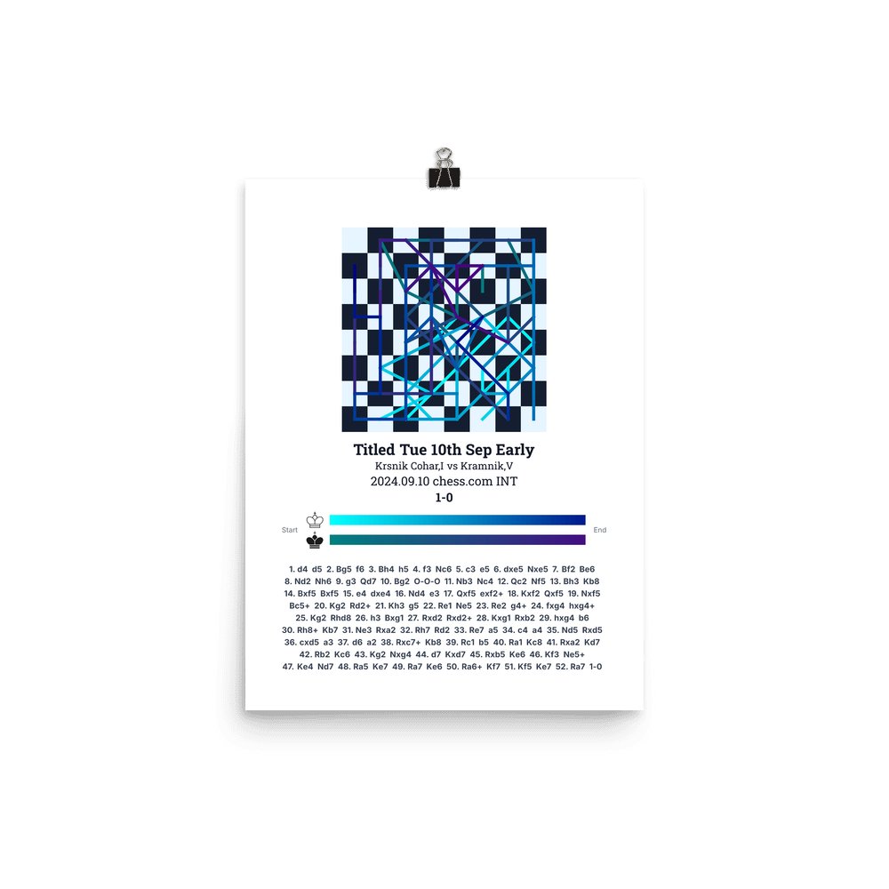 Museum-quality poster on thick, durable matte paper. A sharp, clean look for any chess visualisation.