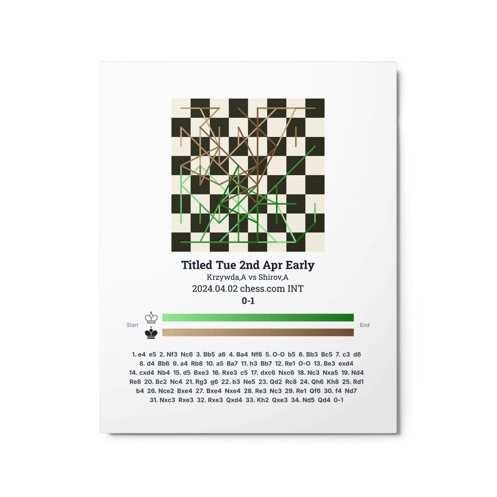 Museum-quality poster on thick, durable matte paper. A sharp, clean look for any chess visualisation.