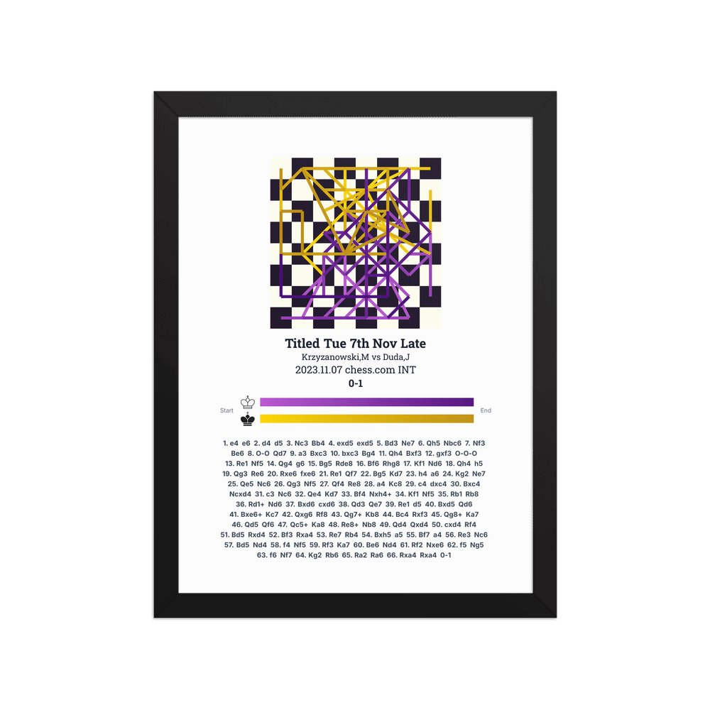 Museum-quality poster on thick, durable matte paper. A sharp, clean look for any chess visualisation.