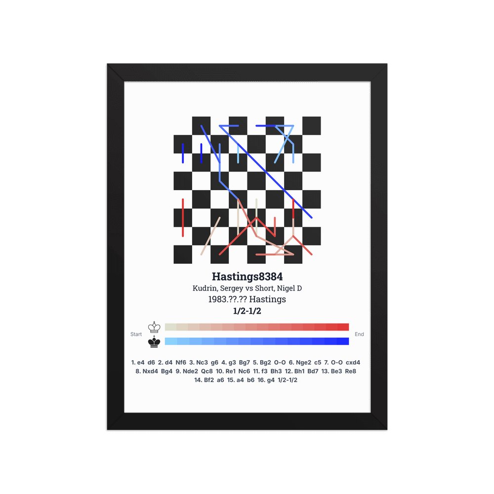 Museum-quality poster on thick, durable matte paper. A sharp, clean look for any chess visualisation.
