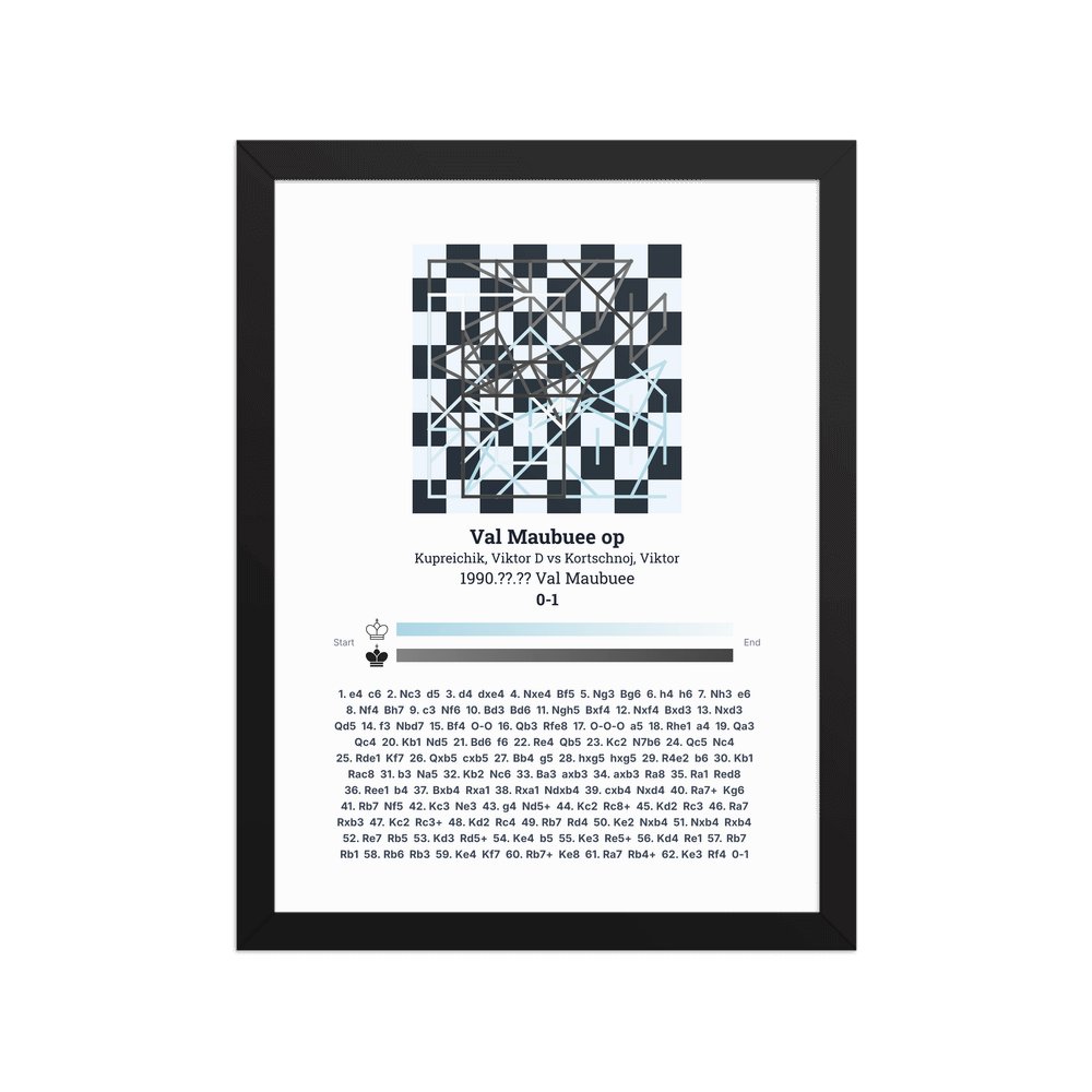 Museum-quality poster on thick, durable matte paper. A sharp, clean look for any chess visualisation.