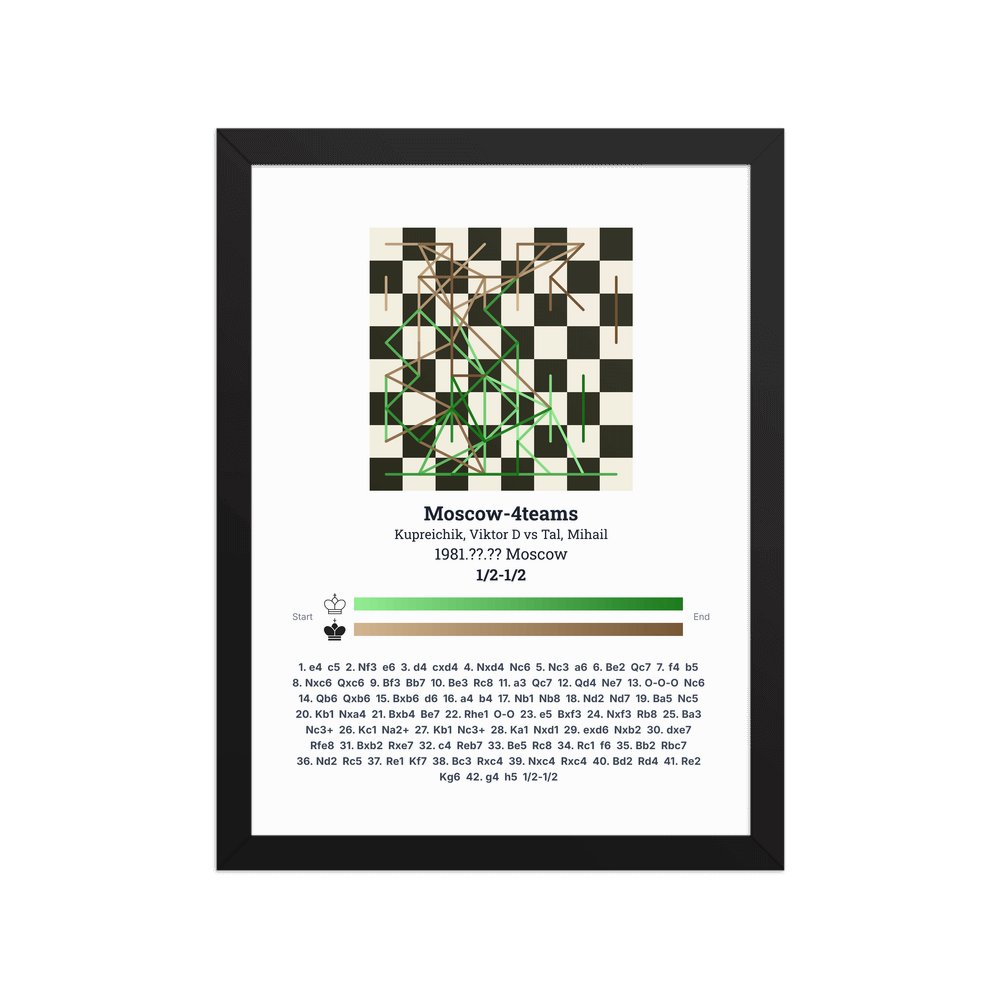 Museum-quality poster on thick, durable matte paper. A sharp, clean look for any chess visualisation.