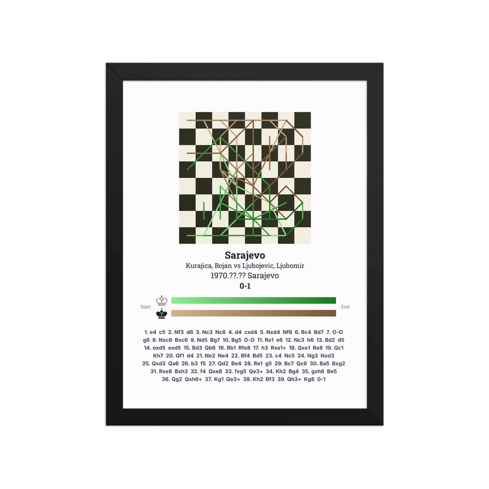 Museum-quality poster on thick, durable matte paper. A sharp, clean look for any chess visualisation.