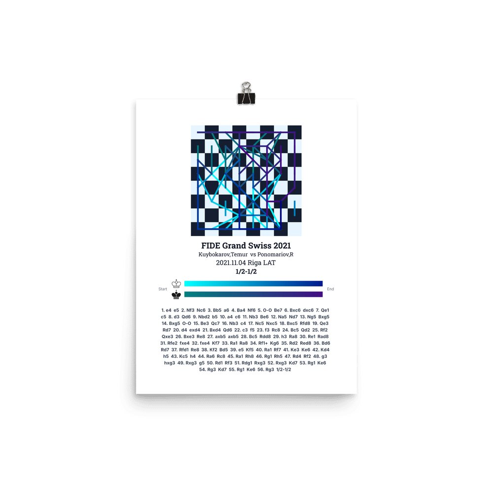 Museum-quality poster on thick, durable matte paper. A sharp, clean look for any chess visualisation.