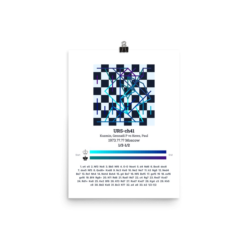Museum-quality poster on thick, durable matte paper. A sharp, clean look for any chess visualisation.