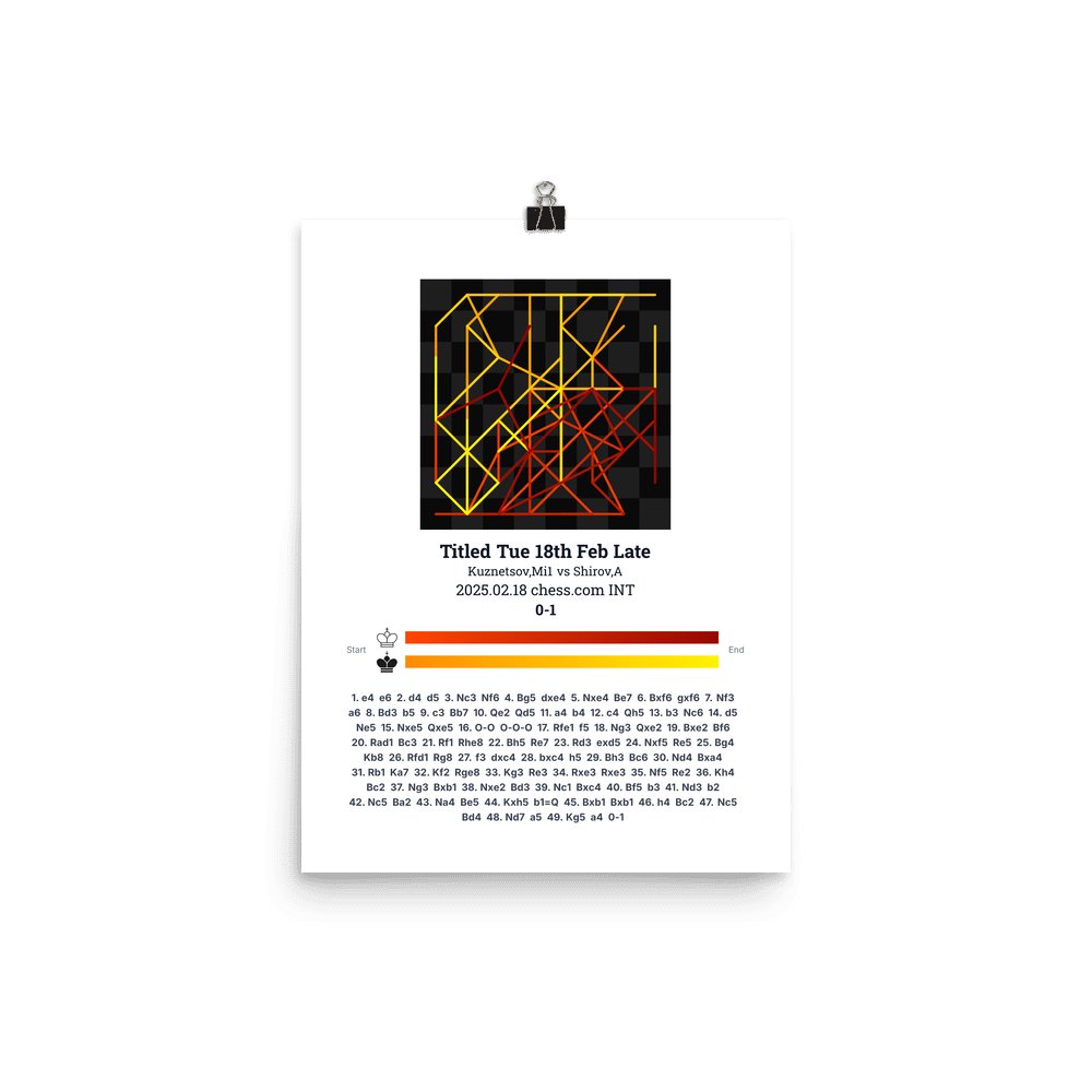 Museum-quality poster on thick, durable matte paper. A sharp, clean look for any chess visualisation.