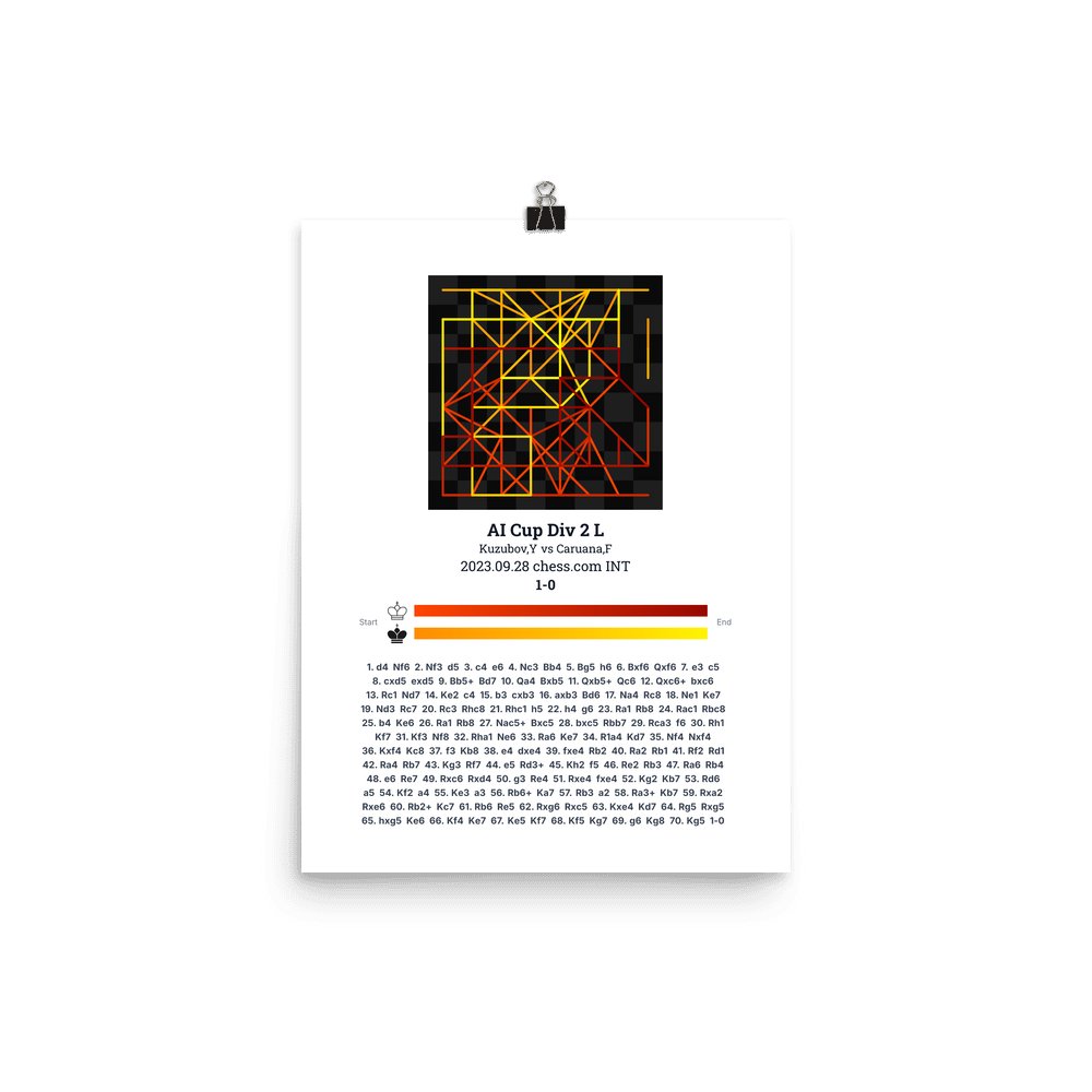 Museum-quality poster on thick, durable matte paper. A sharp, clean look for any chess visualisation.