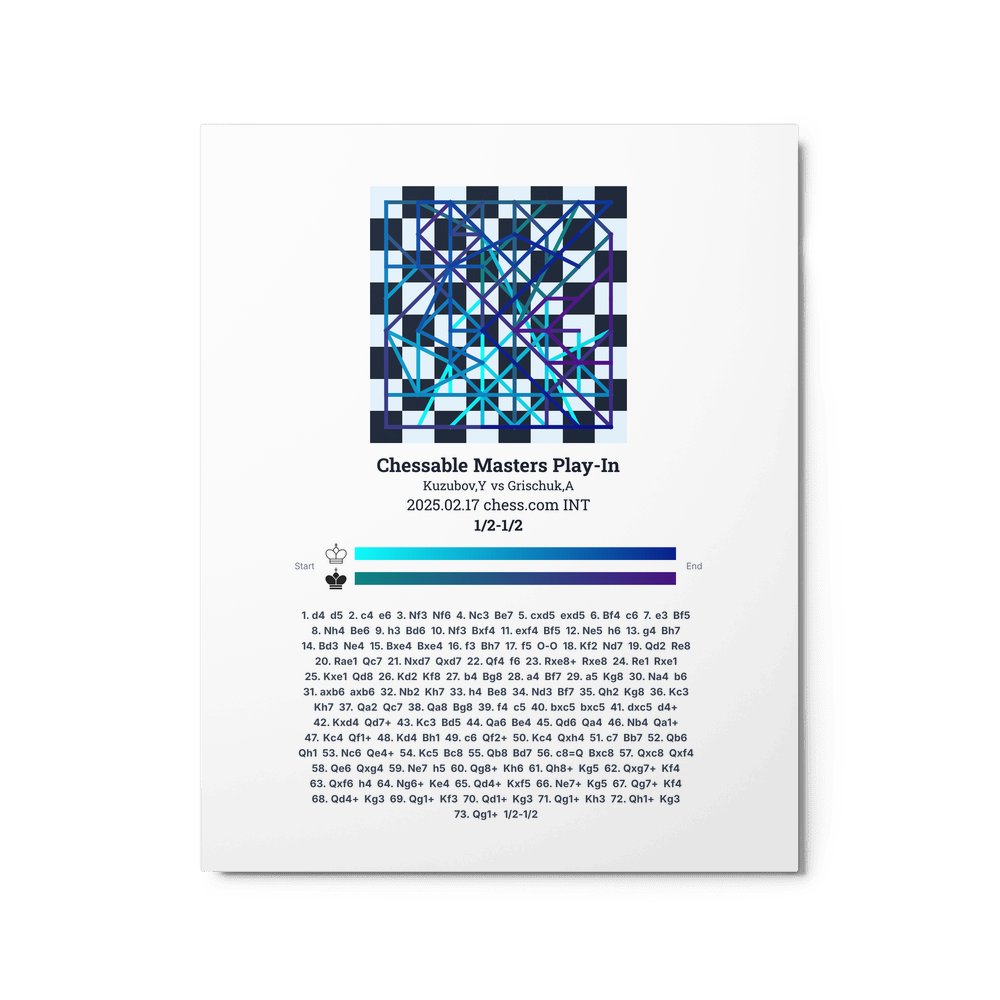 Museum-quality poster on thick, durable matte paper. A sharp, clean look for any chess visualisation.