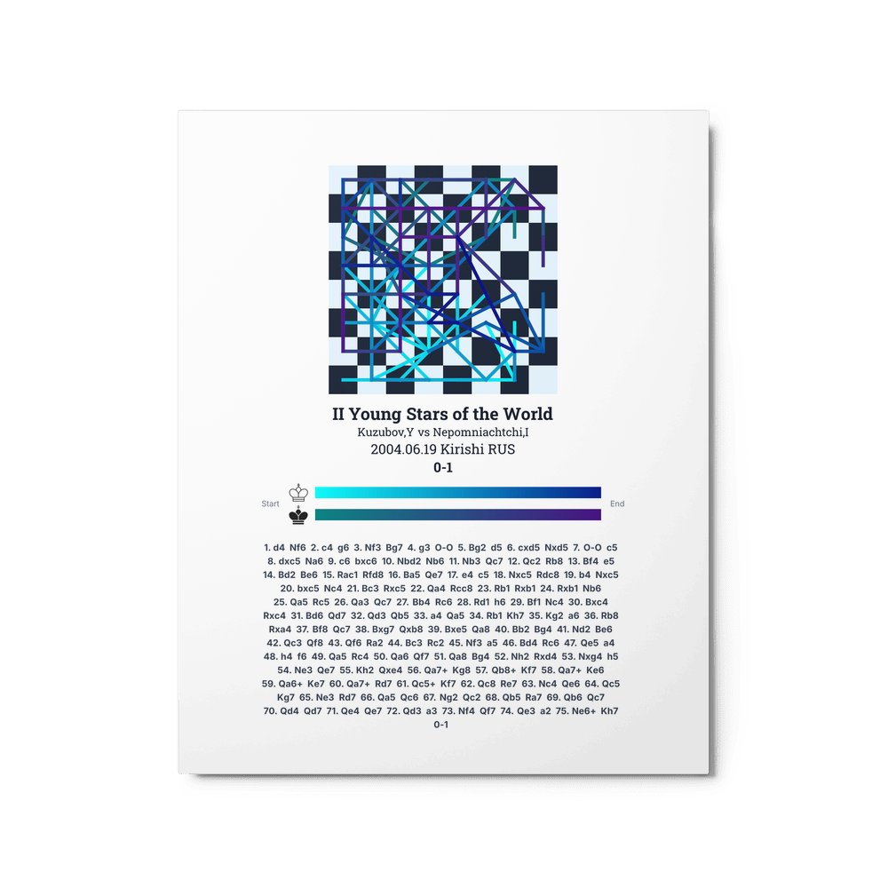 Museum-quality poster on thick, durable matte paper. A sharp, clean look for any chess visualisation.