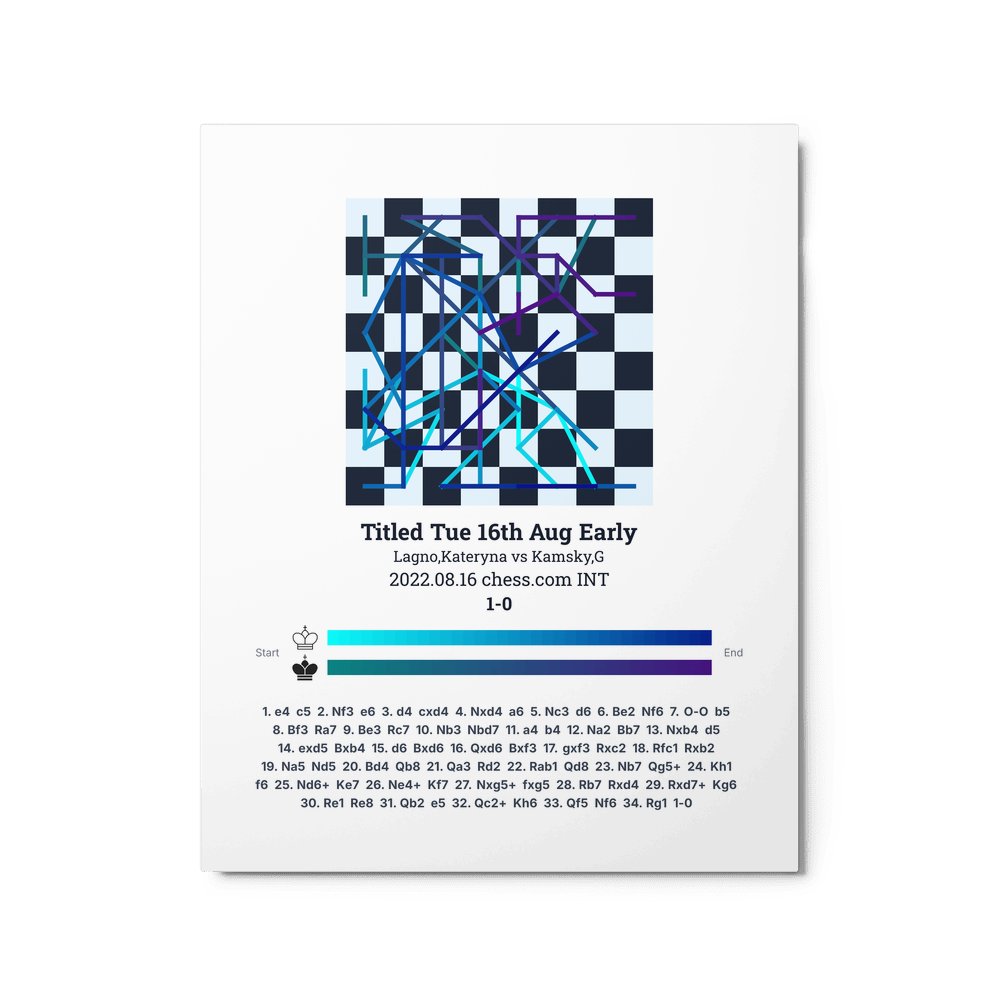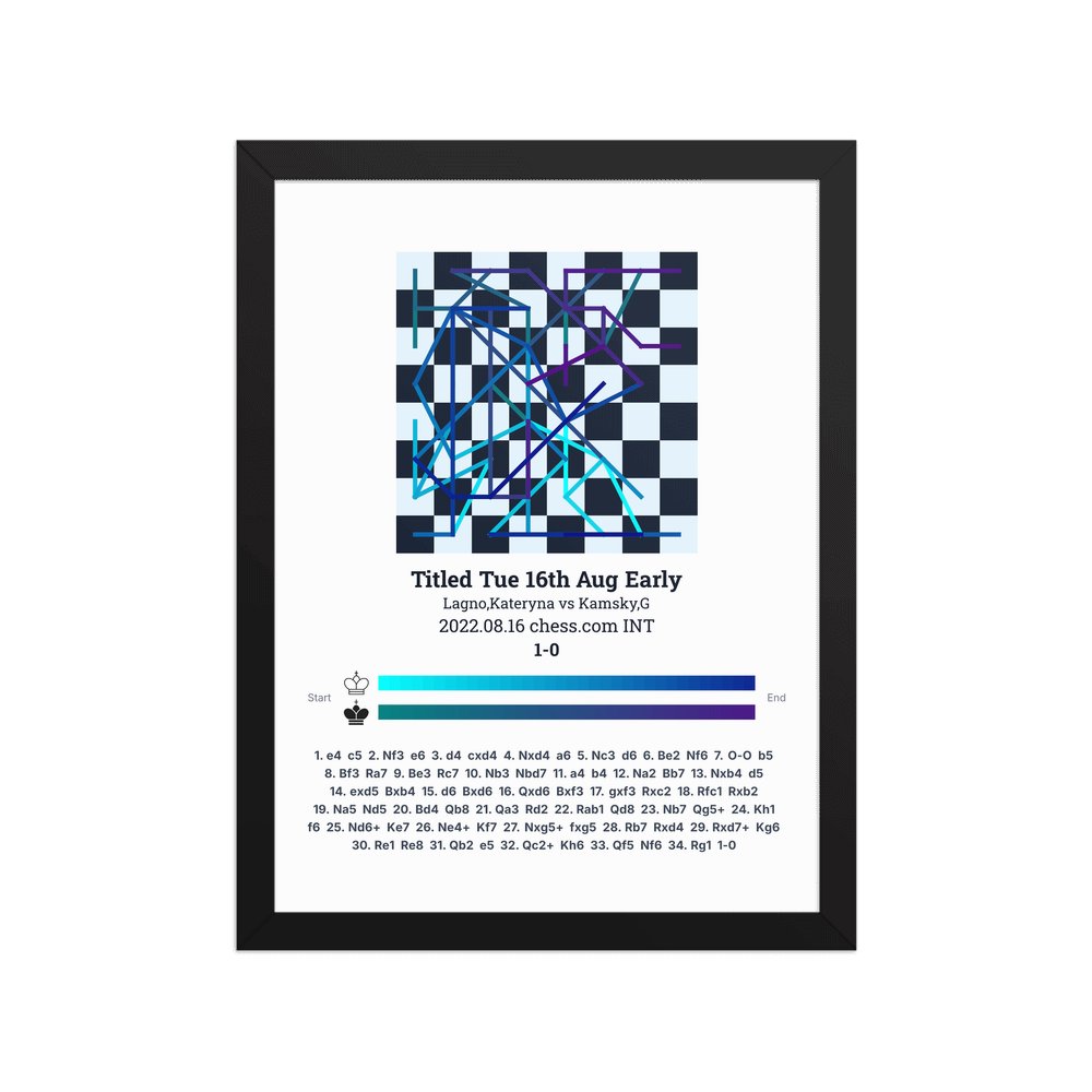 Museum-quality poster on thick, durable matte paper. A sharp, clean look for any chess visualisation.