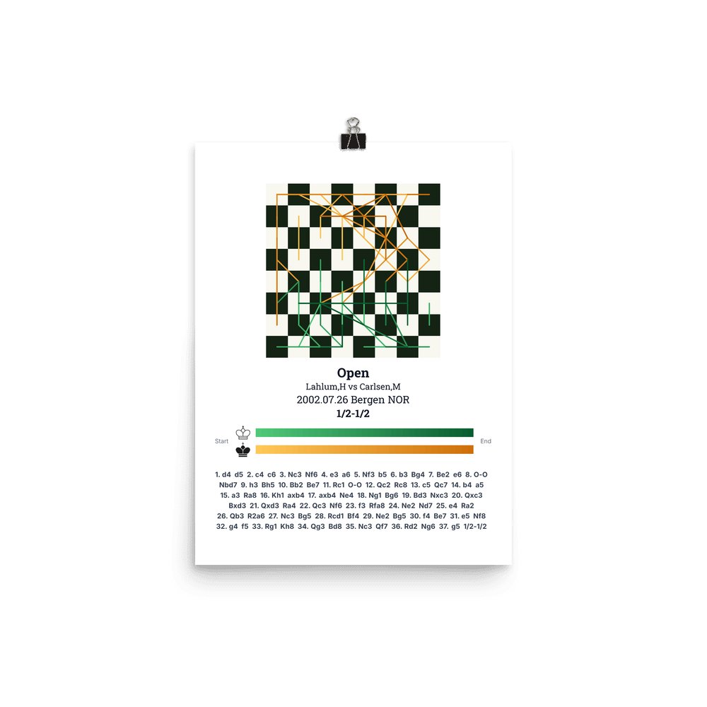 Museum-quality poster on thick, durable matte paper. A sharp, clean look for any chess visualisation.