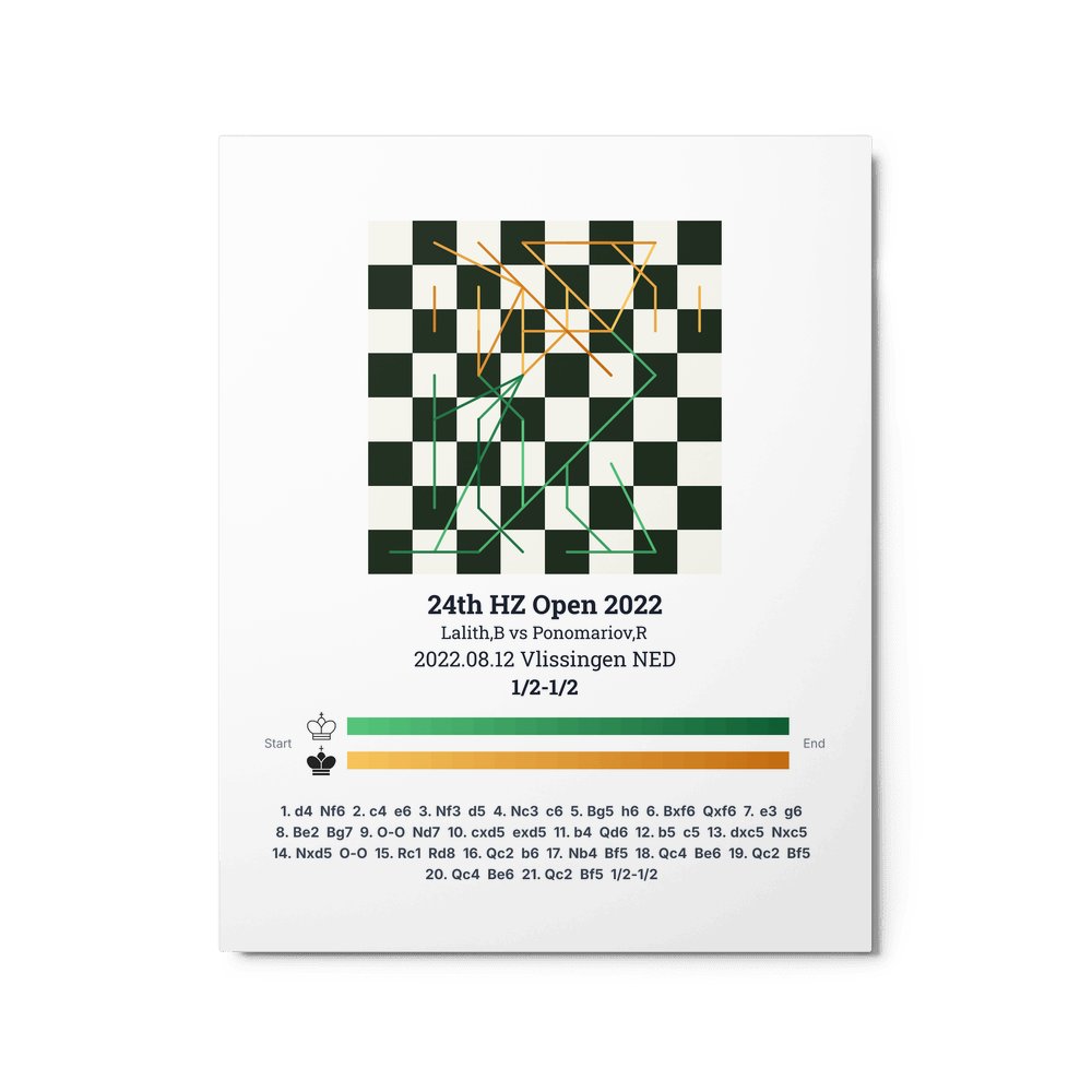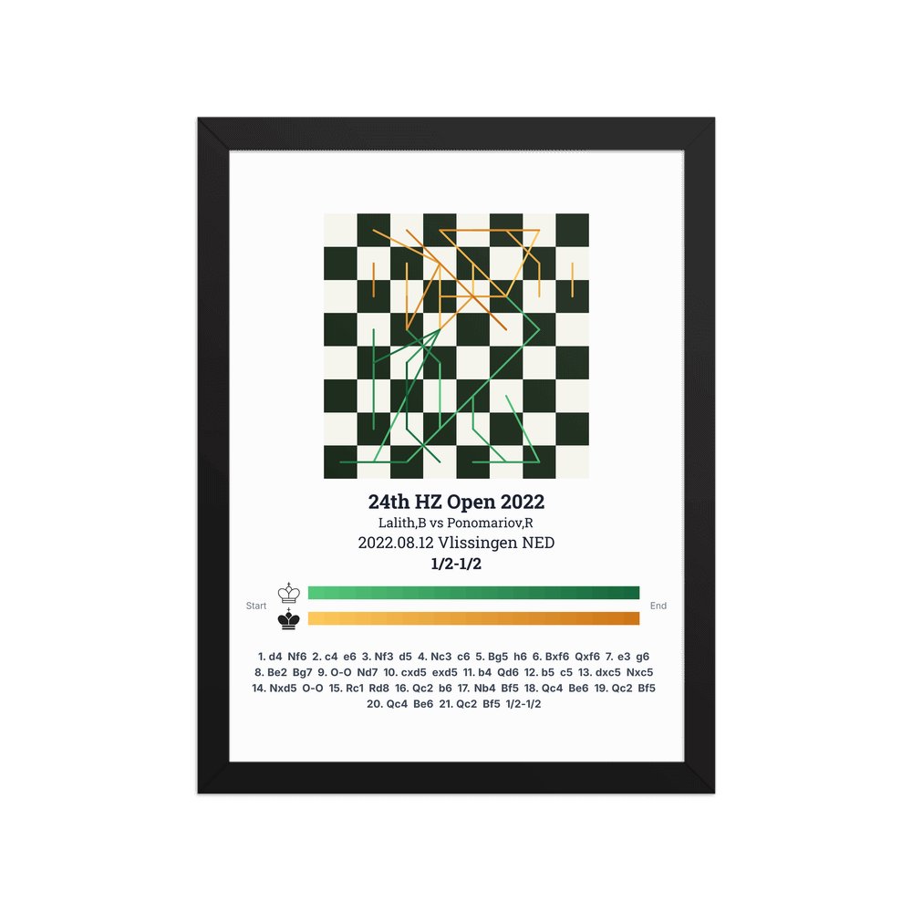 Museum-quality poster on thick, durable matte paper. A sharp, clean look for any chess visualisation.