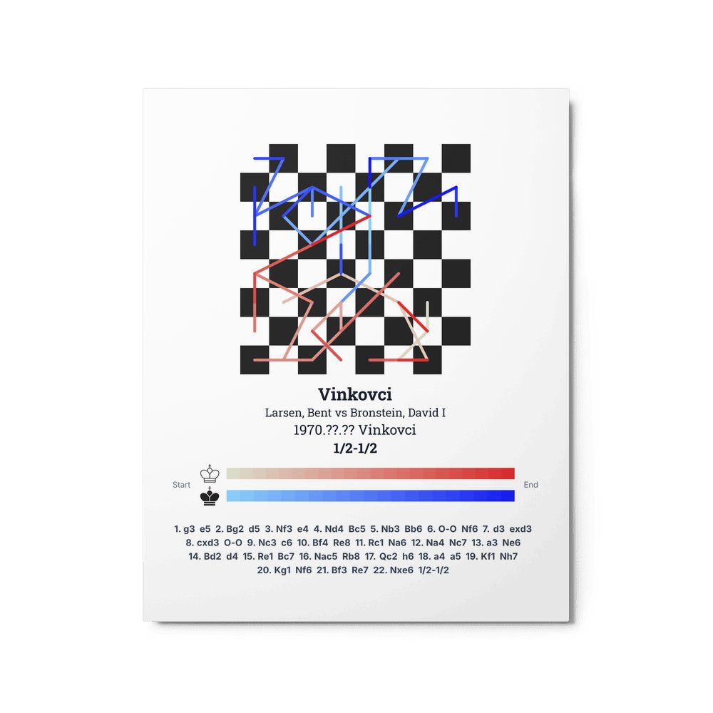 Museum-quality poster on thick, durable matte paper. A sharp, clean look for any chess visualisation.