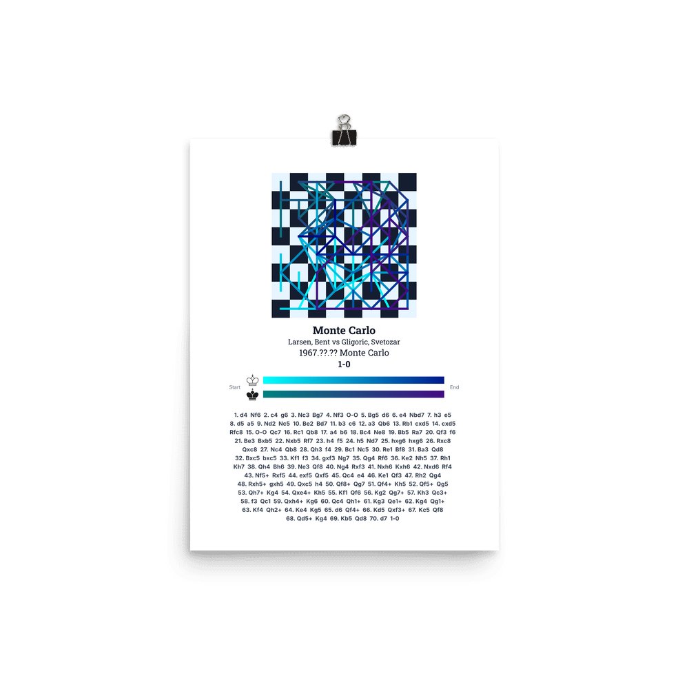 Museum-quality poster on thick, durable matte paper. A sharp, clean look for any chess visualisation.