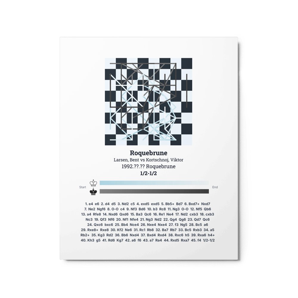 Museum-quality poster on thick, durable matte paper. A sharp, clean look for any chess visualisation.