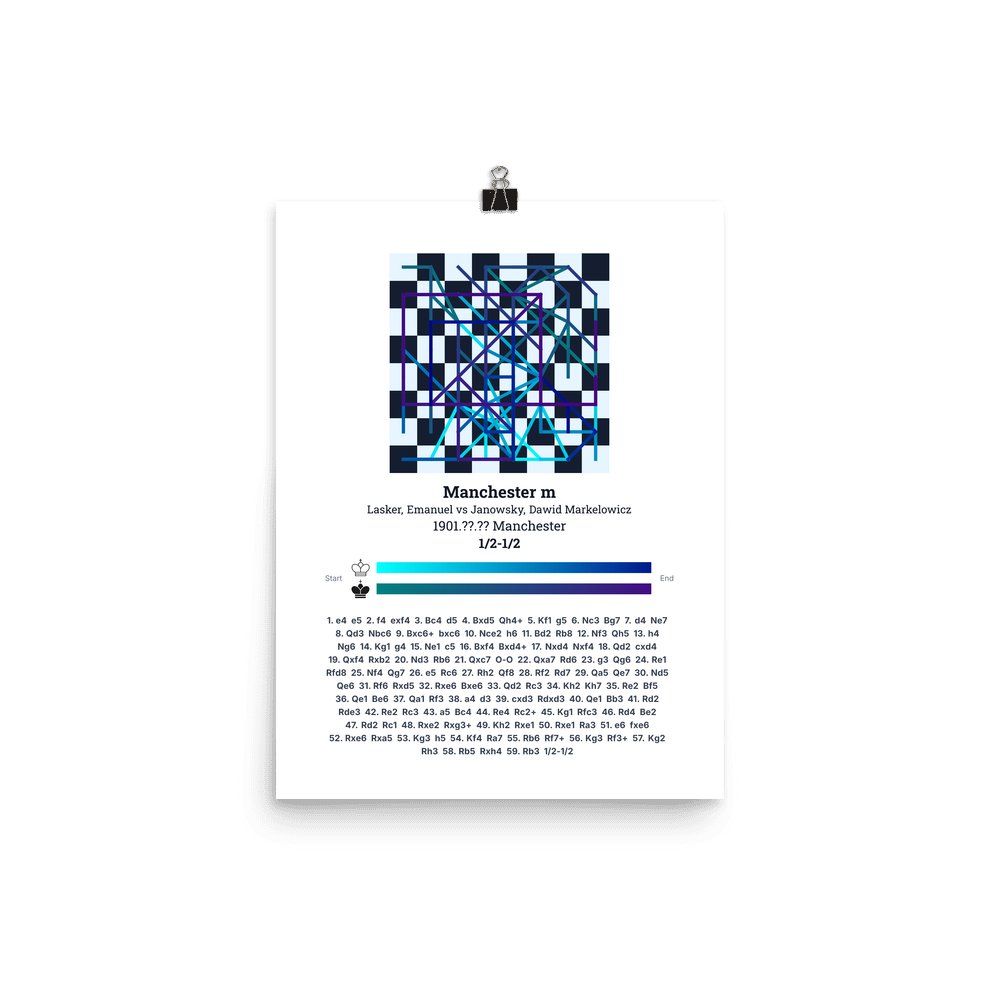 Museum-quality poster on thick, durable matte paper. A sharp, clean look for any chess visualisation.