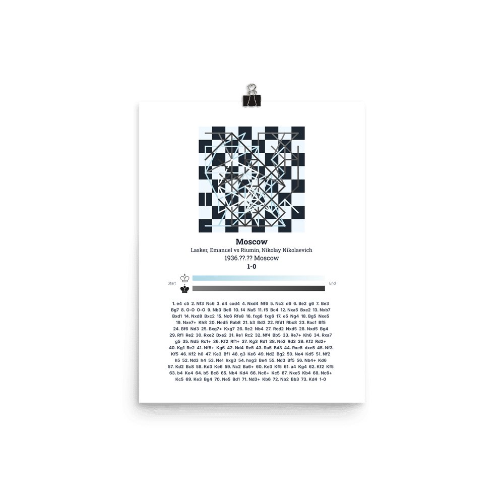 Museum-quality poster on thick, durable matte paper. A sharp, clean look for any chess visualisation.