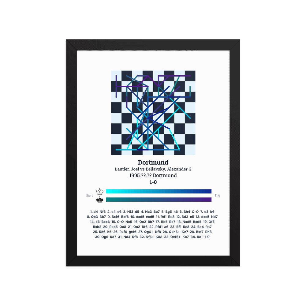 Museum-quality poster on thick, durable matte paper. A sharp, clean look for any chess visualisation.