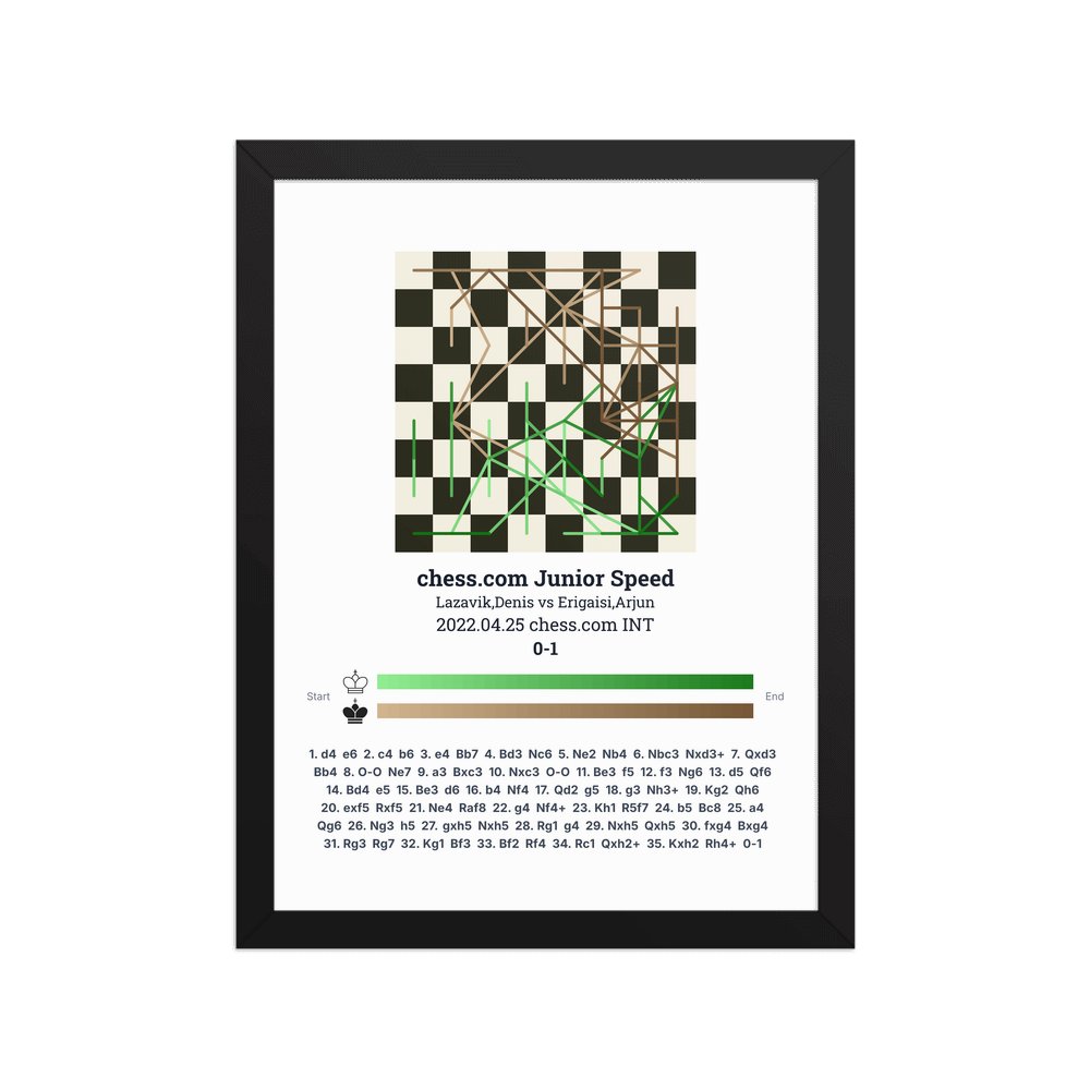 Museum-quality poster on thick, durable matte paper. A sharp, clean look for any chess visualisation.
