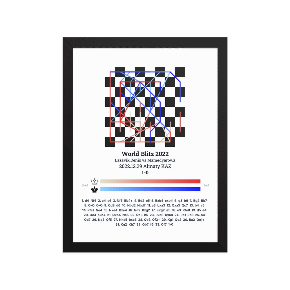 Museum-quality poster on thick, durable matte paper. A sharp, clean look for any chess visualisation.