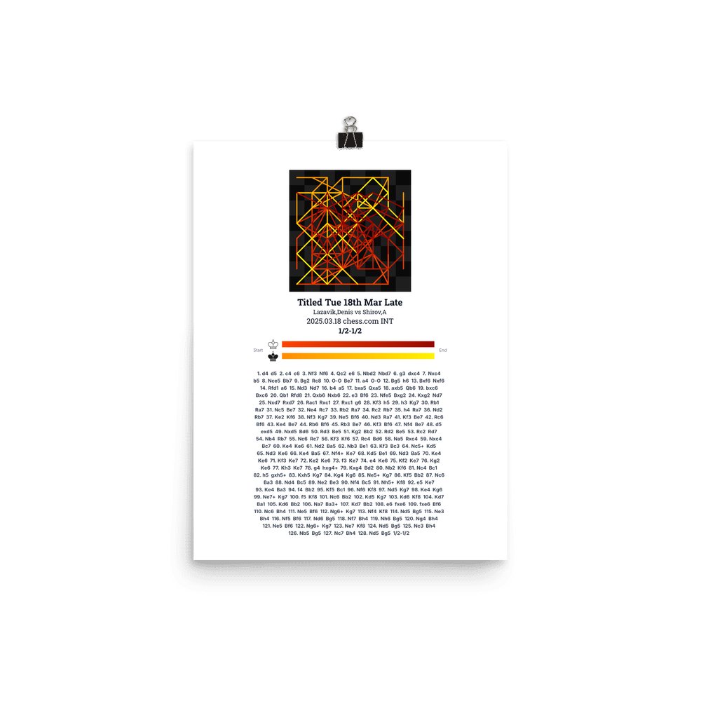 Museum-quality poster on thick, durable matte paper. A sharp, clean look for any chess visualisation.