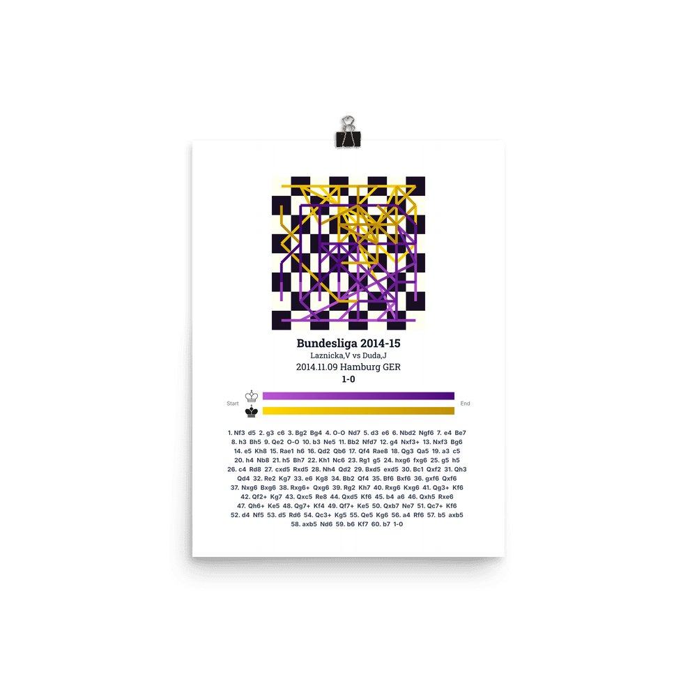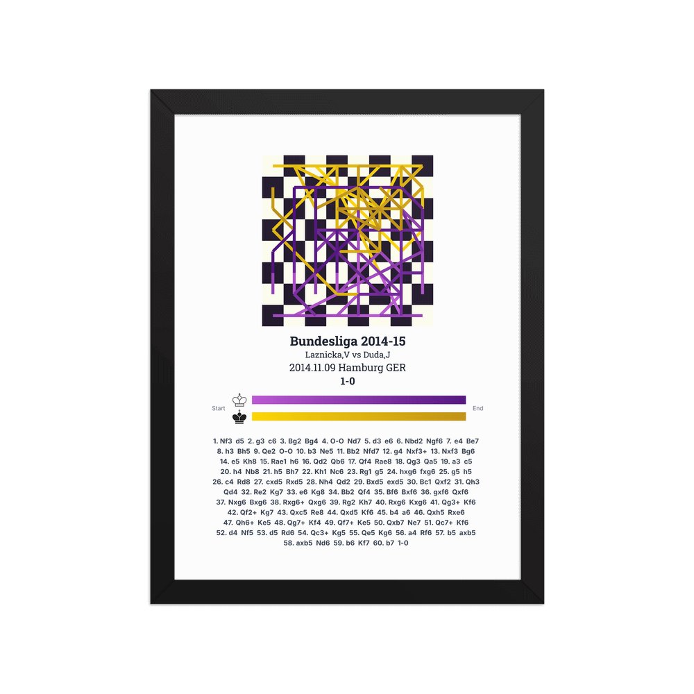 Museum-quality poster on thick, durable matte paper. A sharp, clean look for any chess visualisation.