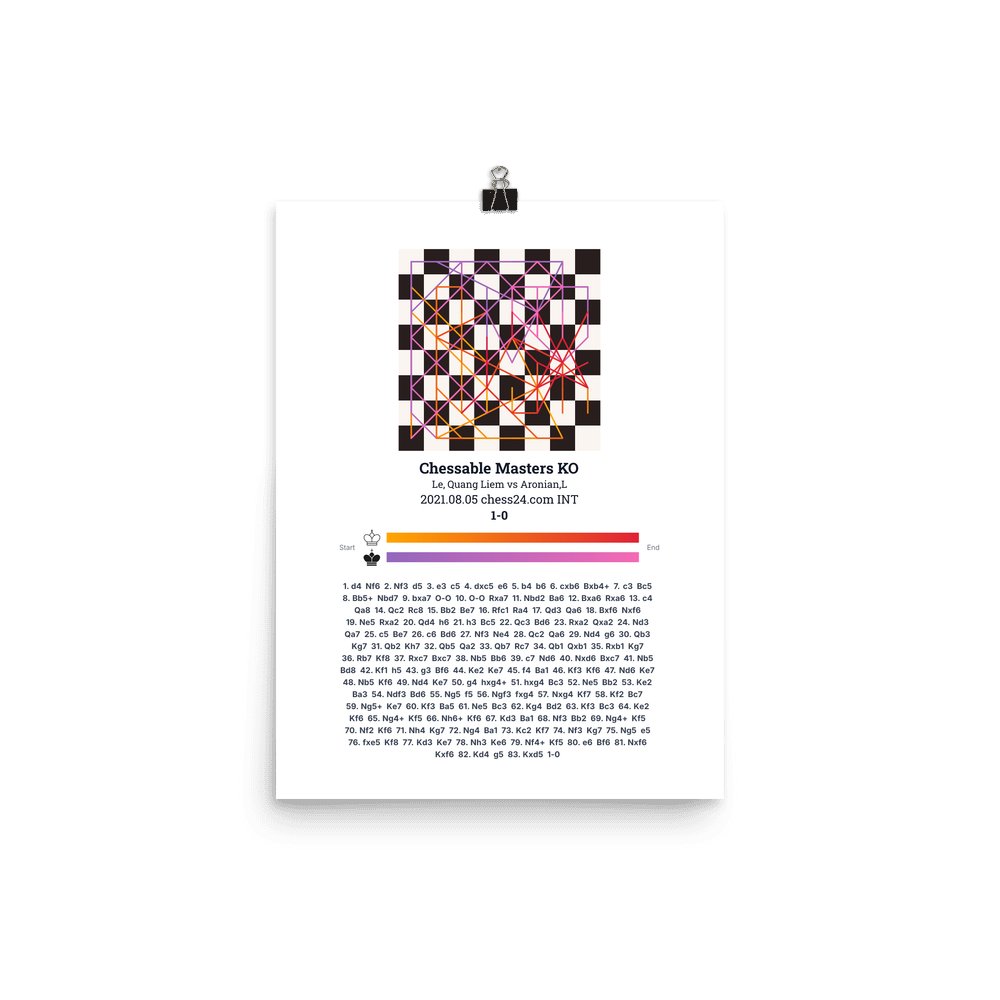 Museum-quality poster on thick, durable matte paper. A sharp, clean look for any chess visualisation.