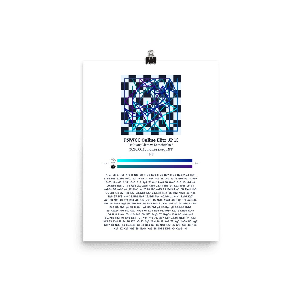 Museum-quality poster on thick, durable matte paper. A sharp, clean look for any chess visualisation.