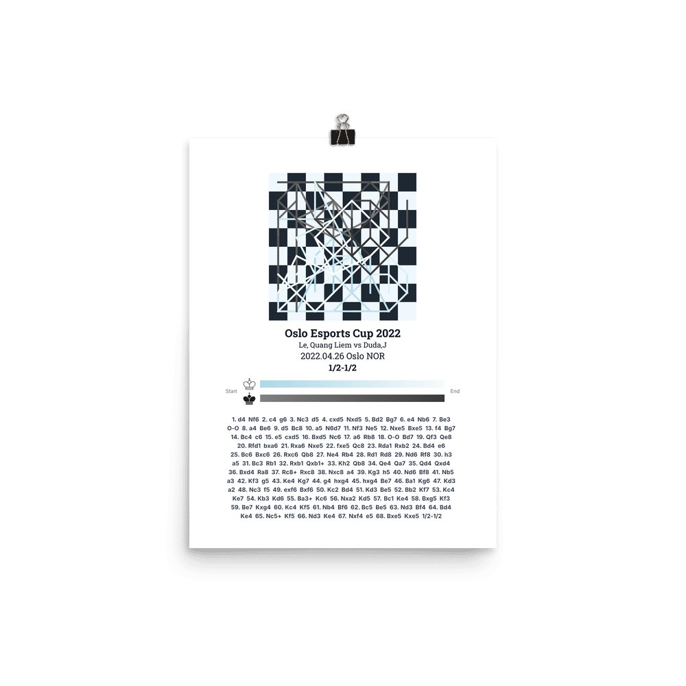 Museum-quality poster on thick, durable matte paper. A sharp, clean look for any chess visualisation.
