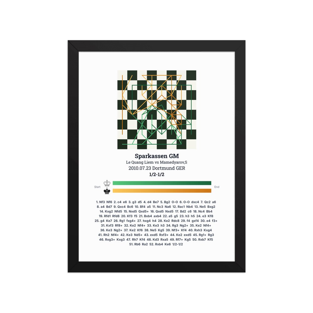 Museum-quality poster on thick, durable matte paper. A sharp, clean look for any chess visualisation.