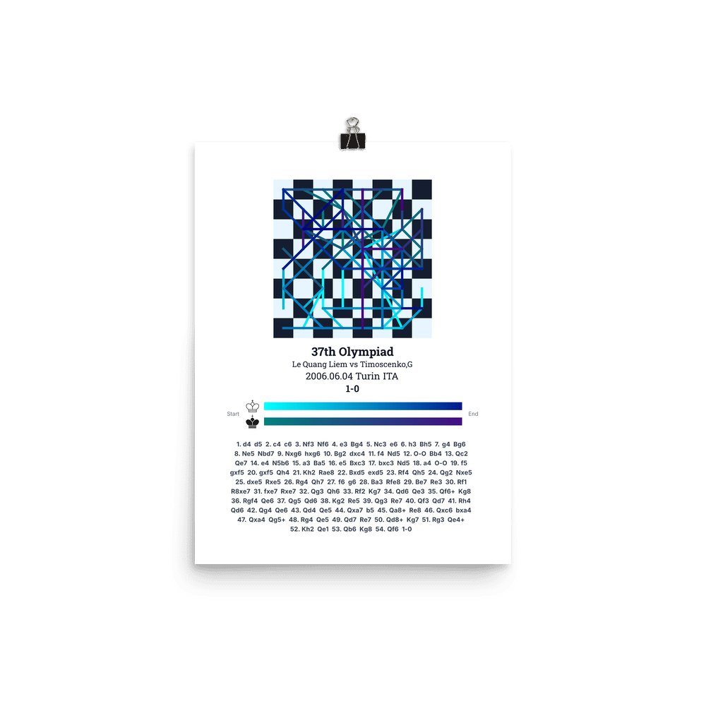 Museum-quality poster on thick, durable matte paper. A sharp, clean look for any chess visualisation.