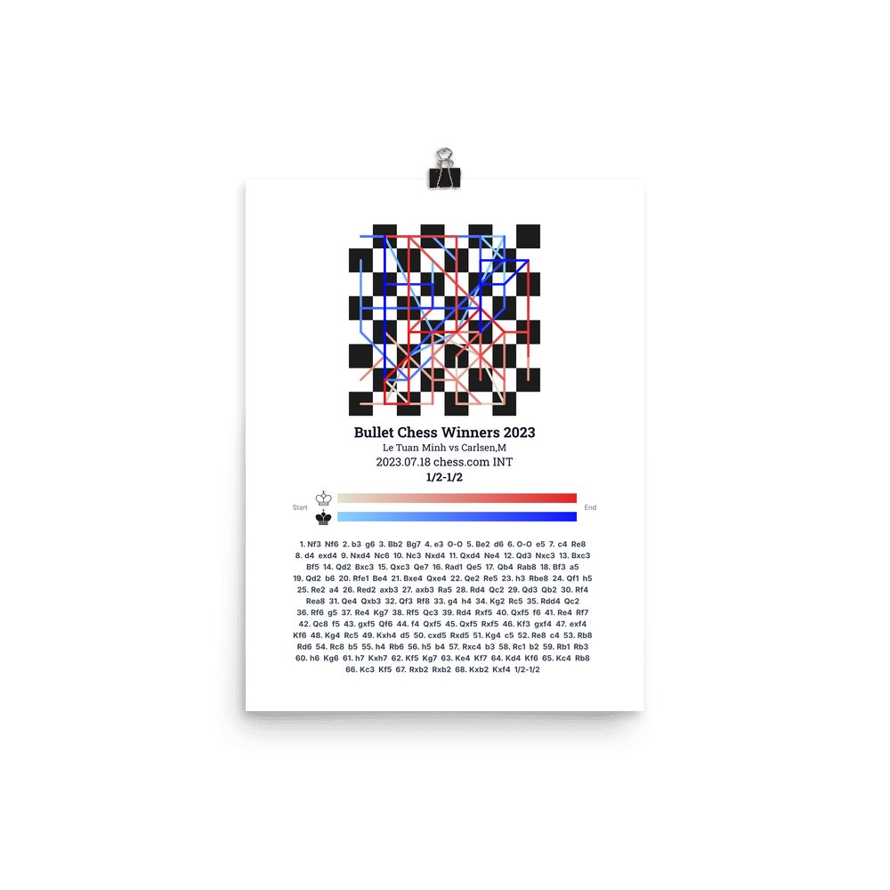 Museum-quality poster on thick, durable matte paper. A sharp, clean look for any chess visualisation.