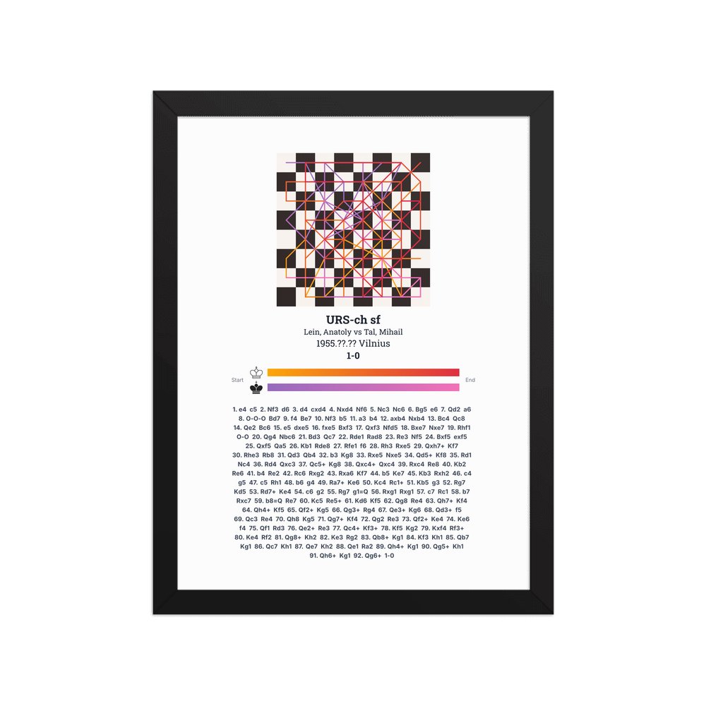 Museum-quality poster on thick, durable matte paper. A sharp, clean look for any chess visualisation.