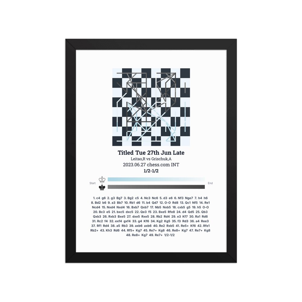 Museum-quality poster on thick, durable matte paper. A sharp, clean look for any chess visualisation.