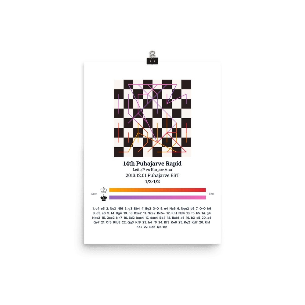 Museum-quality poster on thick, durable matte paper. A sharp, clean look for any chess visualisation.