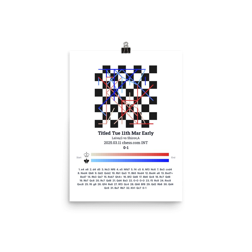 Museum-quality poster on thick, durable matte paper. A sharp, clean look for any chess visualisation.
