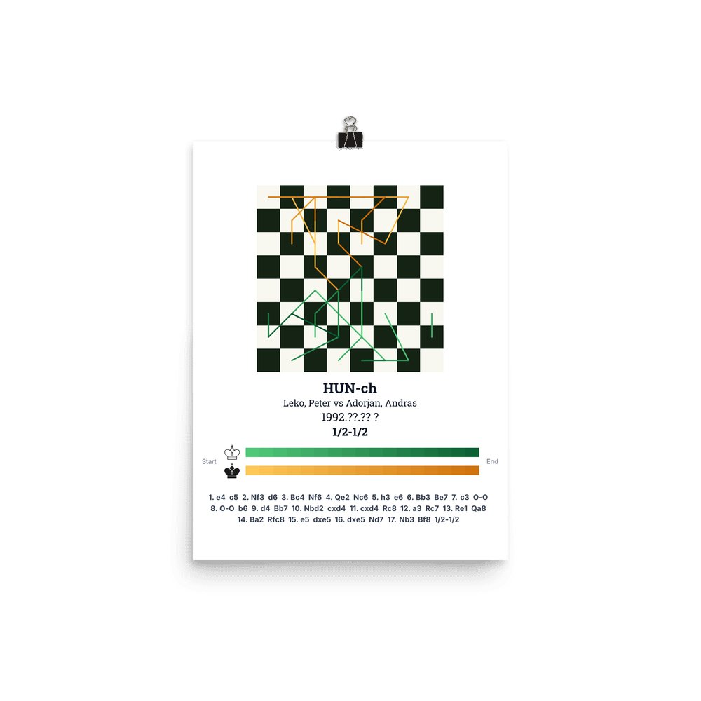 Museum-quality poster on thick, durable matte paper. A sharp, clean look for any chess visualisation.