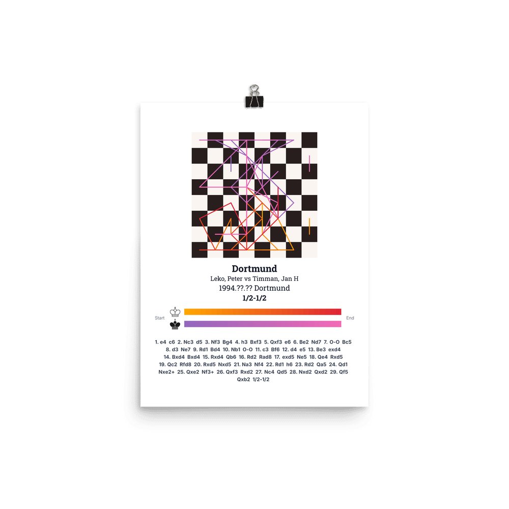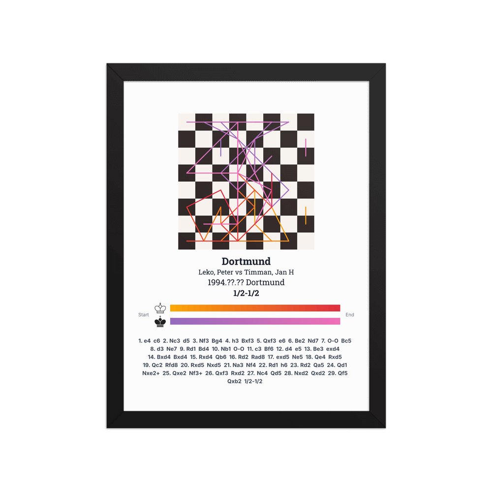 Museum-quality poster on thick, durable matte paper. A sharp, clean look for any chess visualisation.