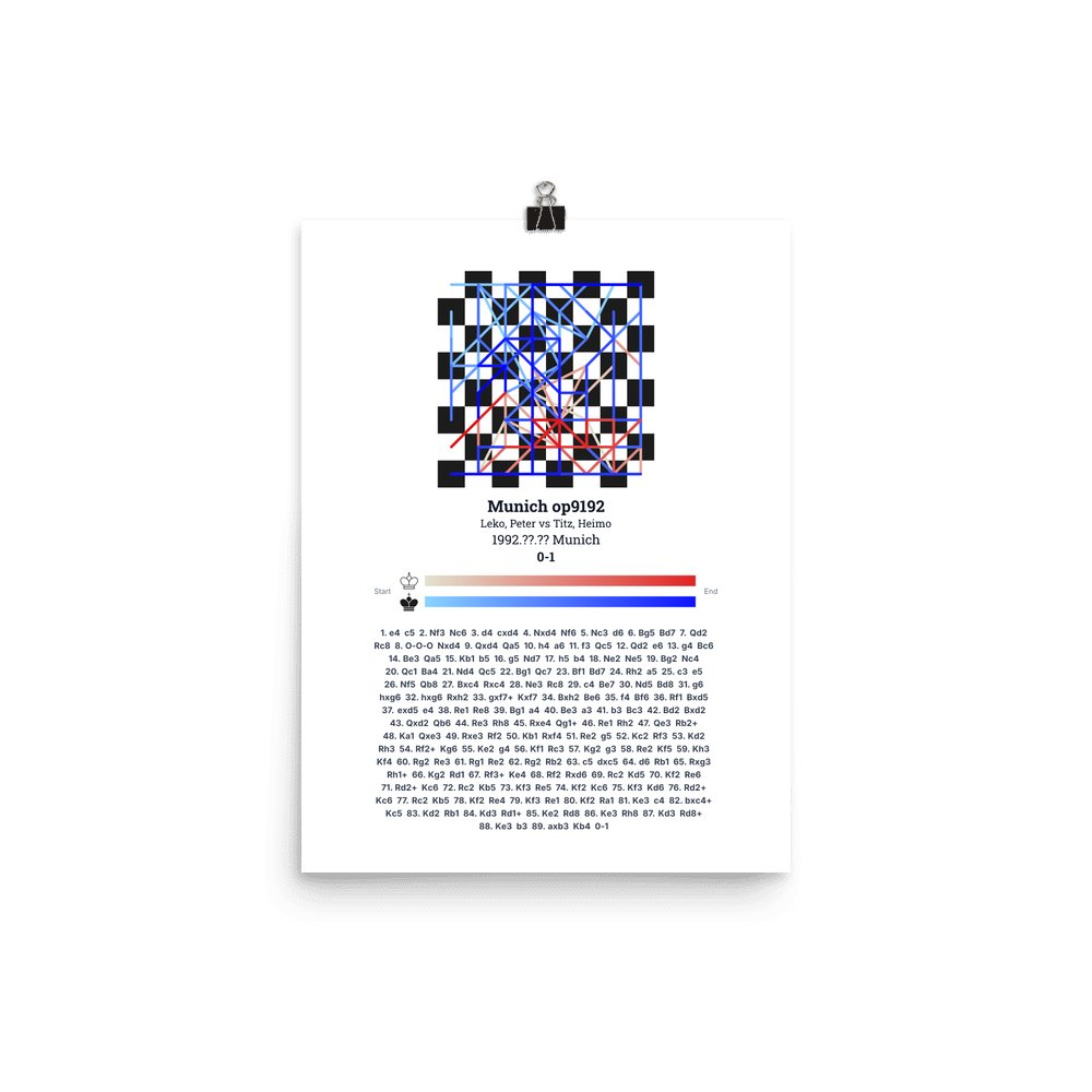 Museum-quality poster on thick, durable matte paper. A sharp, clean look for any chess visualisation.
