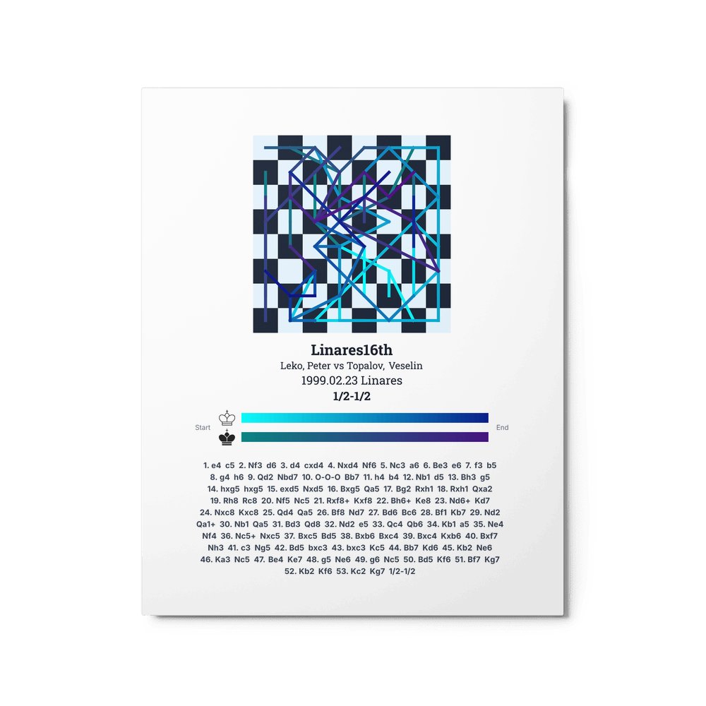 Museum-quality poster on thick, durable matte paper. A sharp, clean look for any chess visualisation.