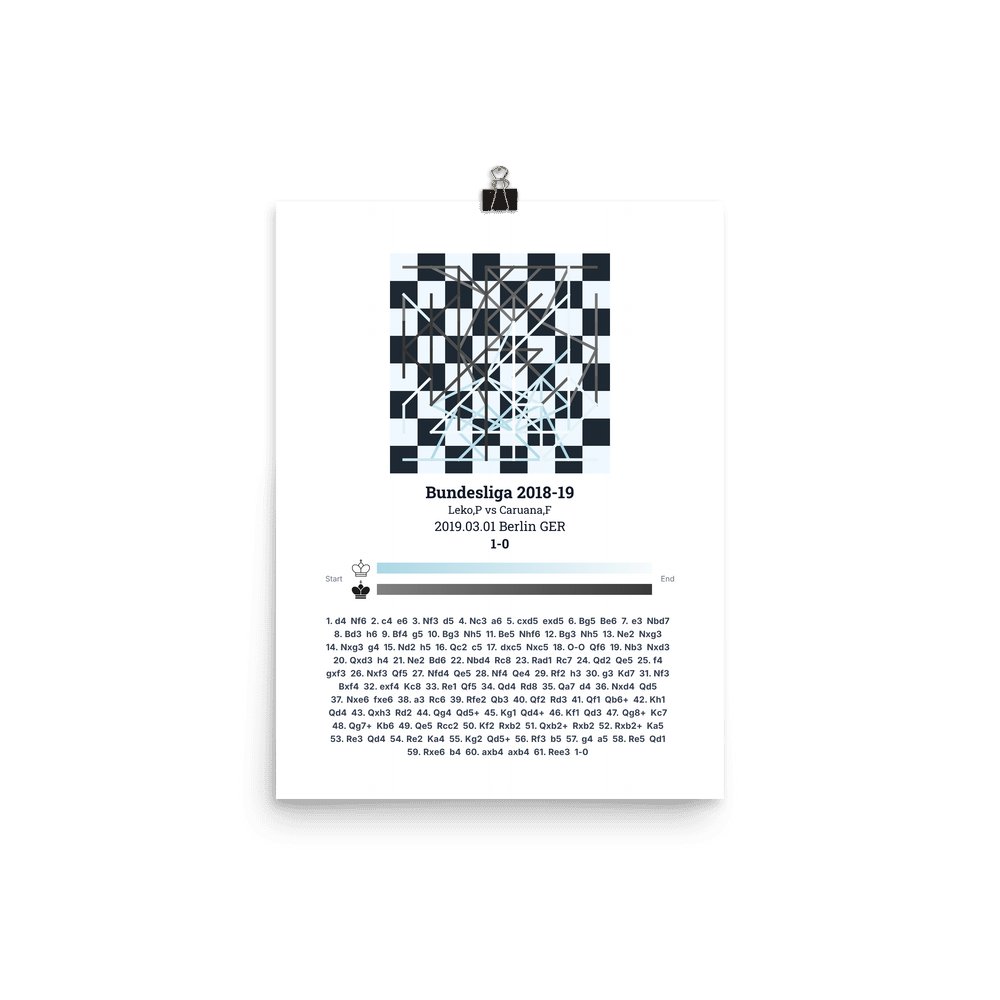 Museum-quality poster on thick, durable matte paper. A sharp, clean look for any chess visualisation.