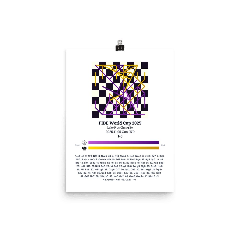 Museum-quality poster on thick, durable matte paper. A sharp, clean look for any chess visualisation.