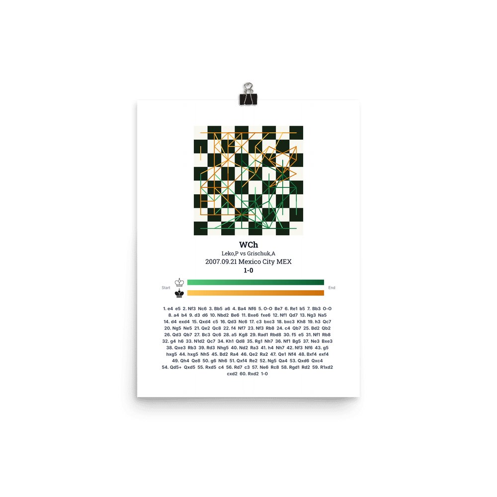 Museum-quality poster on thick, durable matte paper. A sharp, clean look for any chess visualisation.
