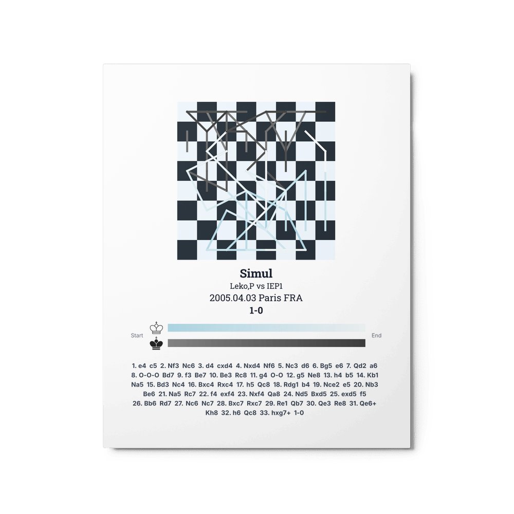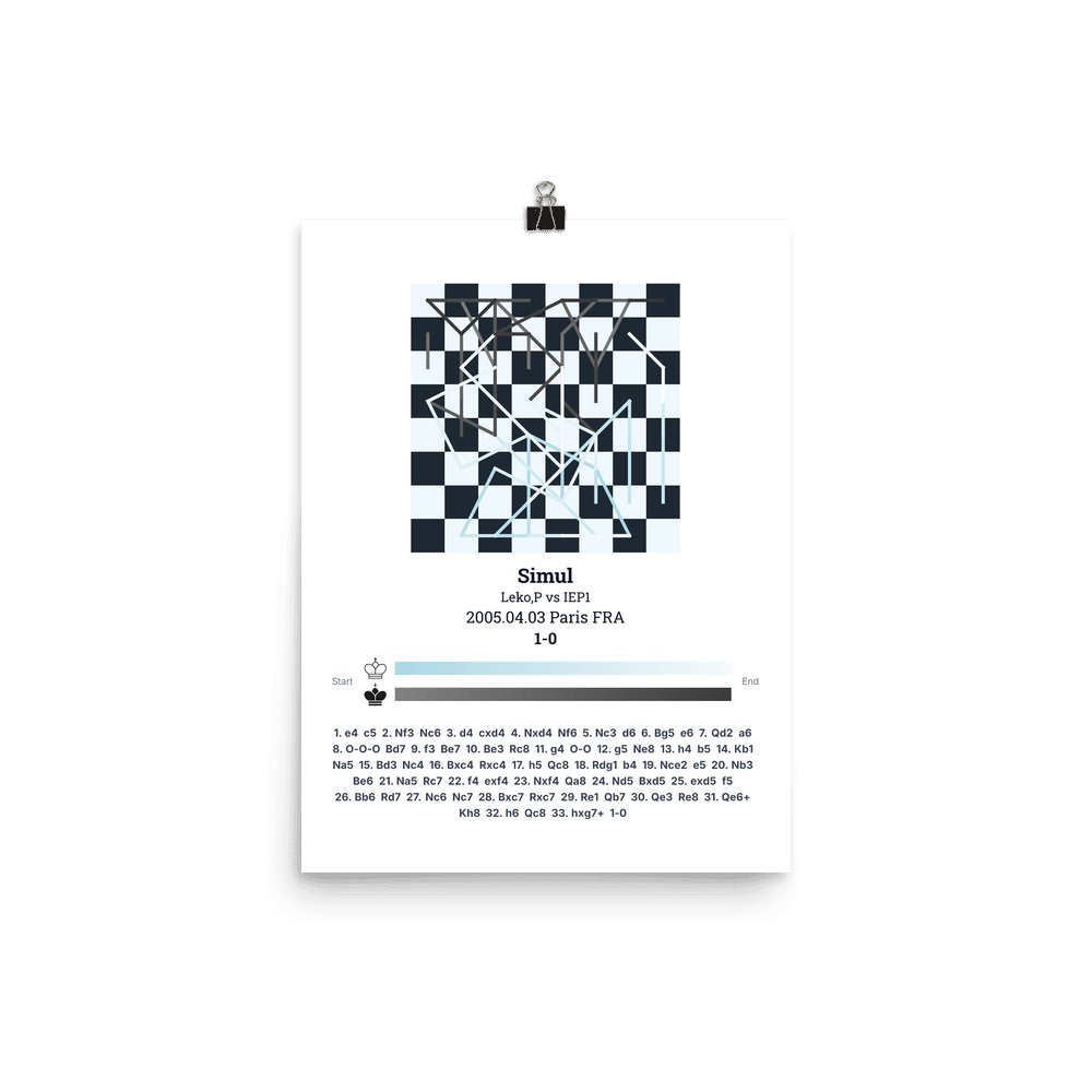 Museum-quality poster on thick, durable matte paper. A sharp, clean look for any chess visualisation.
