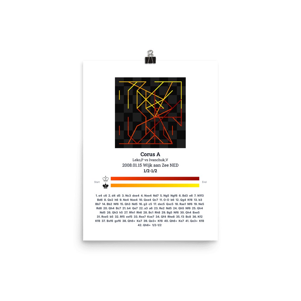 Museum-quality poster on thick, durable matte paper. A sharp, clean look for any chess visualisation.