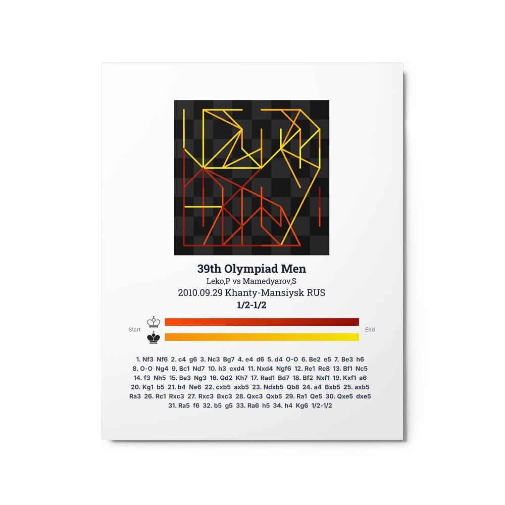 Museum-quality poster on thick, durable matte paper. A sharp, clean look for any chess visualisation.