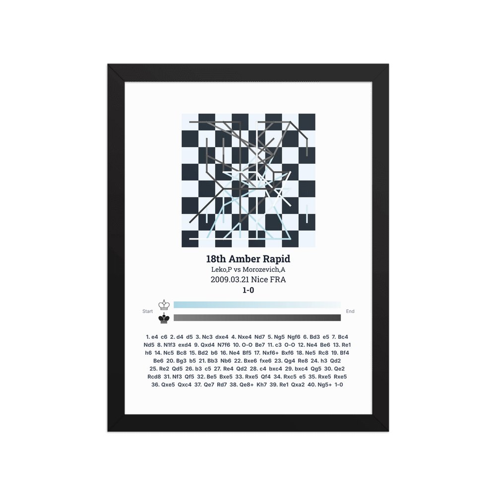 Museum-quality poster on thick, durable matte paper. A sharp, clean look for any chess visualisation.