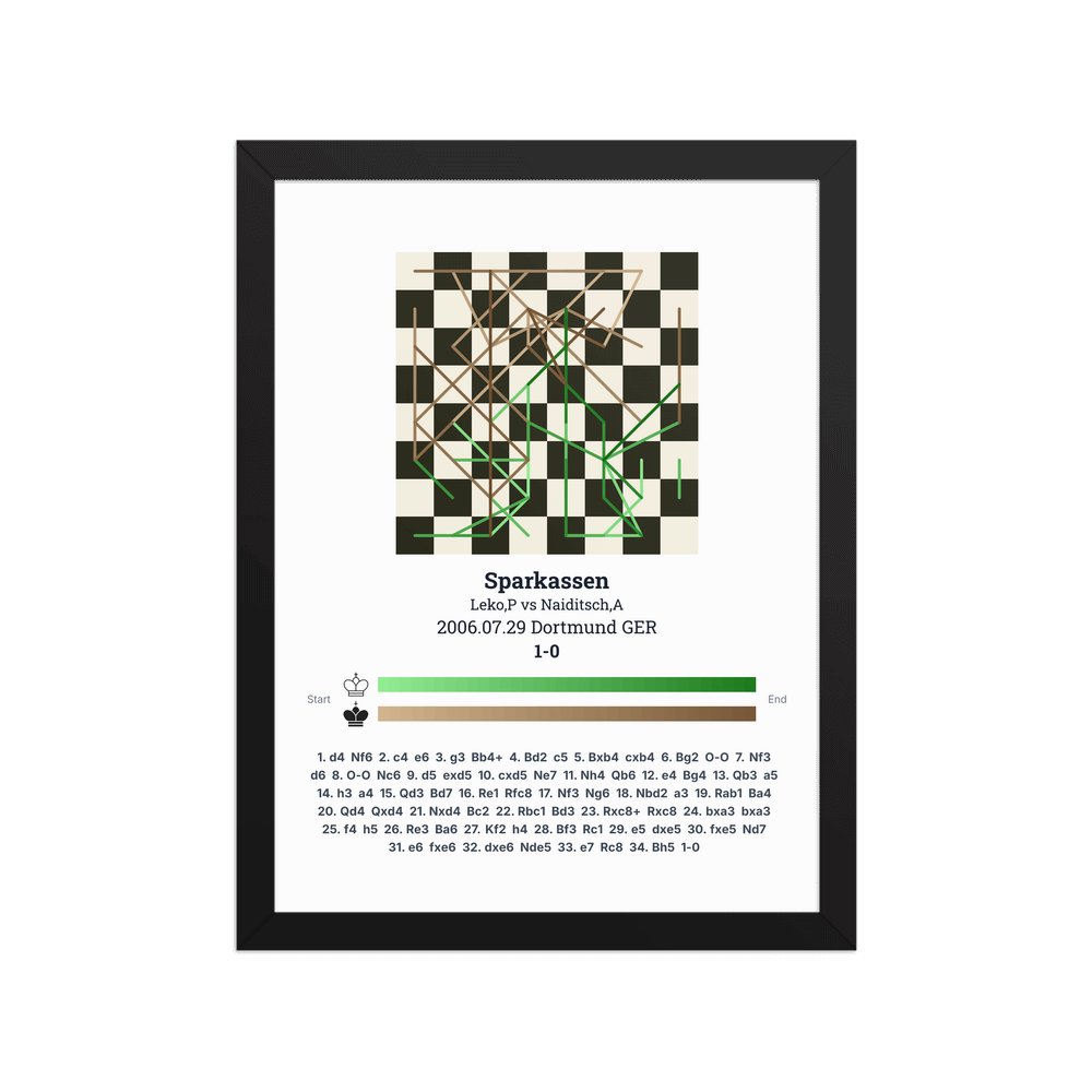 Museum-quality poster on thick, durable matte paper. A sharp, clean look for any chess visualisation.