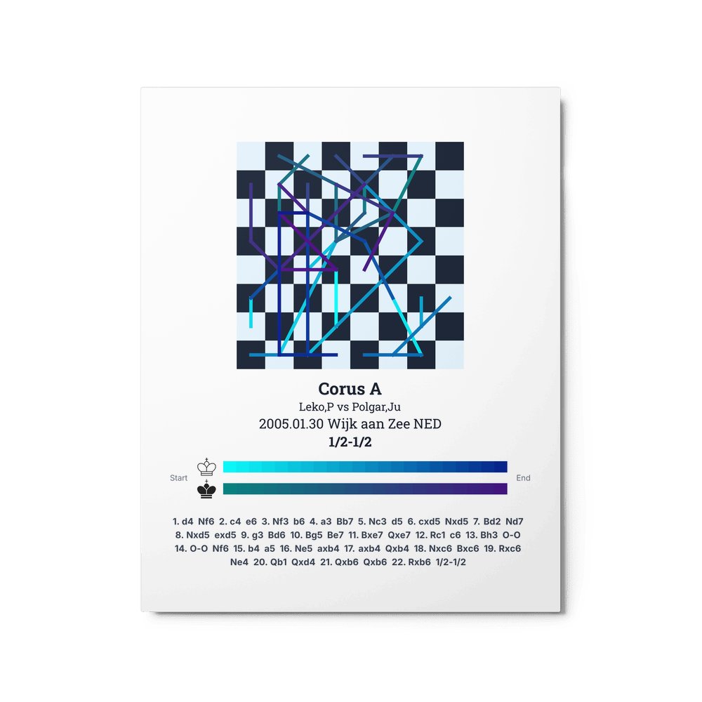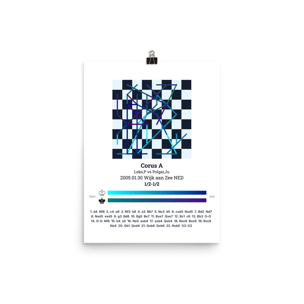 Museum-quality poster on thick, durable matte paper. A sharp, clean look for any chess visualisation.